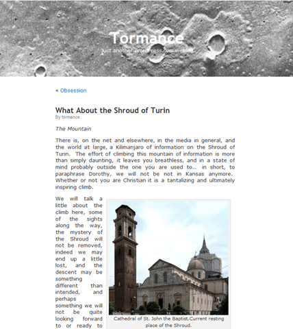 There is, on the net and elsewhere, in the media in general, and the world at large, a Kilimanjaro of information on the Shroud of Turin.  The effort of climbing this mountain of information is more than simply daunting, it leaves you breathless, and in a state of mind probably outside the one you are used to…  in short, to paraphrase Dorothy, we will not be not in Kansas anymore.  Whether or not you are Christian it is a tantalizing and ultimately inspiring climb.