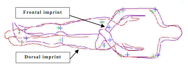 Point is if you look at the dorsal image, there is a zone under the buttocks with no image. How do you draw an outline ? by extrapolation ? Assuming there must be an image ? Assuming the linen was here, standing in front of the body, streched ?
