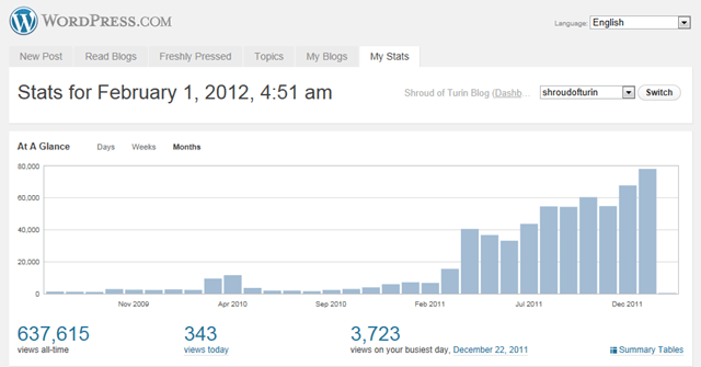 ENEA calmed down. I expected a quieter month. But January 2012 was a surprise: 78,198 views. It wasn’t frontend loaded, suggesting spillover from December. It wasn’t because of all the comments caused by Sciencebod. A quick look at the logs suggests the growth came largely from an increase in people following the blog on Facebook and Twitter.