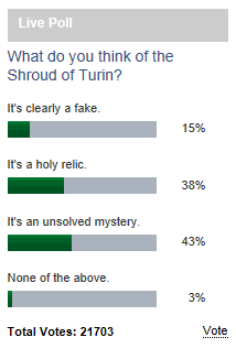 That is one of the reason why online polls are inaccurate. They are easy to tamper with. It happens all the time. Fortunately, this can be usually be detected because it invariably makes it into blogs, Facebook and Twitter. Google and other search engines find messages to this effect when it happens. There is no evidence that this happened with the Shroud of Turin poll at Cosmic Log. There were over 20,000 respondents and there is no way that any attempt to stuff the ballot box would have gone unnoticed.