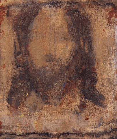 The first thing I did after the new year was paint this series of little Christ images. They were inspired by my earlier 40 Christ Portraits project and additionally by the Shroud of Turin–thus the subtitles “golden shroud” and “grey shroud”. The paintings were made on muslin cloth gessoed to the panel beneath. I made the edges of the fabric part of the composition to heighten the shroud theme. These pieces will be part of my March show at Authenique Gallery in St. George. The paintings range in size from about four inches to seven inches.