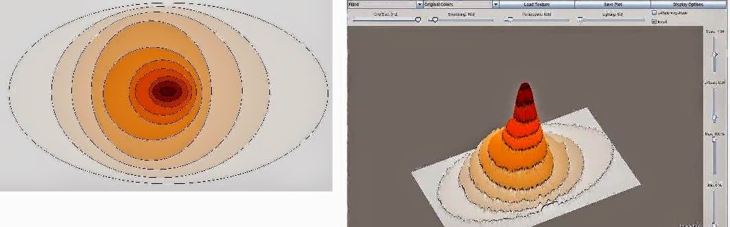 There’s a simple way of demonstrating that a 2D graphic with no 3D history whatsoever is capable of responding to 3D rendering in ImageJ. Simply construct a series of concentric circles or ovals in MS Paint, using the colour palette to increase or decrease tone intensity progressively towards the centre (like colour-coded height contours on a map).